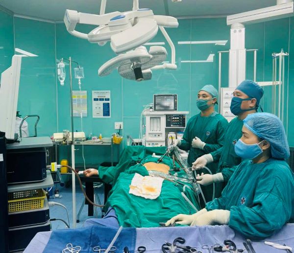 Kíp phẫu thuật được thực hiện, khi các bác sĩ tiến hành nhận thấy trong ổ bụng có rất nhiều máu đỏ tươi lẫn máu cục, sau mặt bàng quang có vết thương dài khoảng 10cm, rất nhiều máu cục trong vết thương. Lấy hết máu cục thấy vết thương mặt sau bàng quang rách toàn bộ 3 lớp. Các bác sĩ tiến hành hút 700ml máu tươi lẫn máu cục sau đó cầm máu và khâu bàng quang. Tiếp tục tiến hành rửa kiểm tra phát hiện góc gan trái và góc gan phải nhiều máu tươi đang chảy theo nhịp mạch đập. Qua nội soi không xác định được điểm chảy máu cụ thể, các bác sĩ tiến hành mổ mở kiểm tra và cầm máu lách. Sau hơn 2 giờ phẫu thuật ca phẫu thuật đã thành công, bệnh nhân tiếp tục được theo dõi và chăm sóc tại khoa Ngoại tổng hợp.